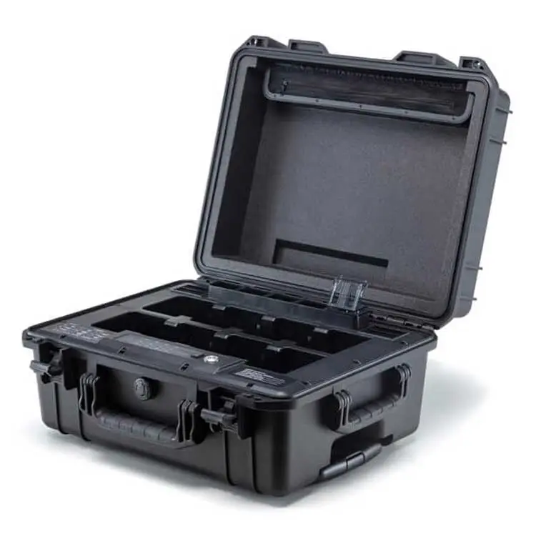 Portable and easy to use, the BS60 battery station can be used to charge, store, and transport batteries. It can charge four drone batteries and four controller batteries at a time, allowing seamlessly shift changing during operation. Designed like a trolley case, it can be conveniently carried. A 220-240 V power source is required for the battery station. It needs approximately 60 minutes to fully charge two TB60 intelligent flight batteries, and 30 minutes to charging them to 20% ~ 90% of the capacity.
